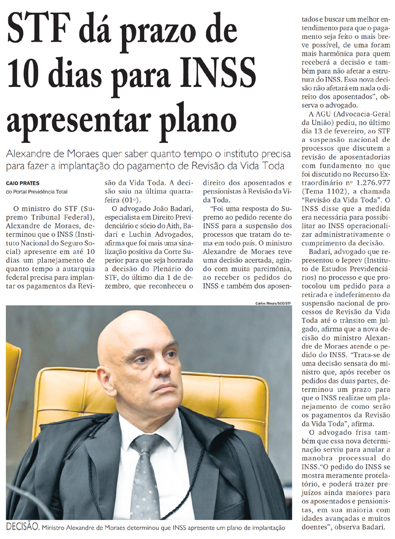 STF dá prazo de 10 dias para INSS apresentar plano