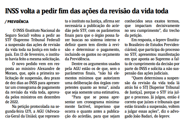 INSS volta a pedir fim das ações da revisão da vida toda