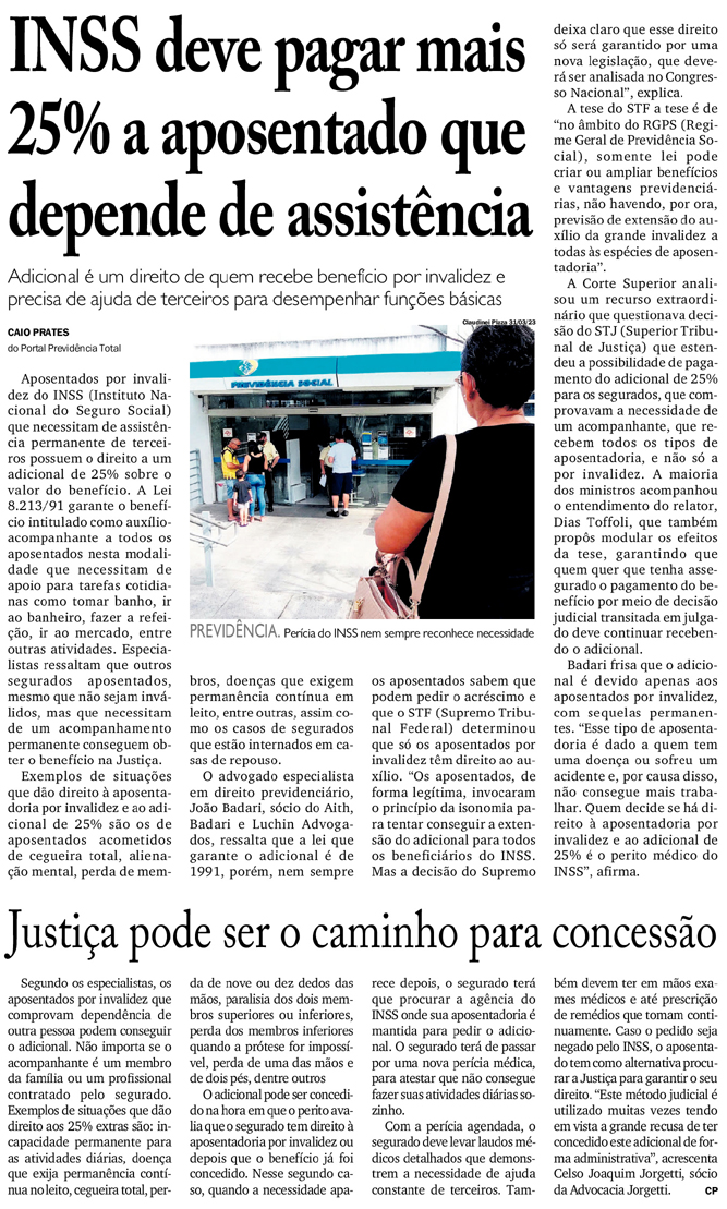 INSS deve pagar mais 25% a aposentado que depende de assistência
