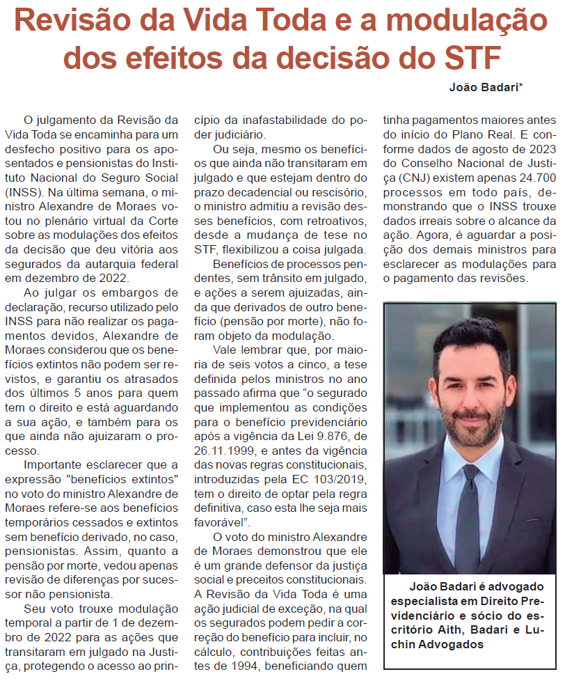 Revisão da Vida Toda e a modulação dos efeitos da decisão do STF