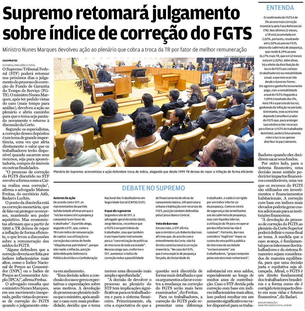 Supremo retomará julgamento sobre índice de correção do FGTS