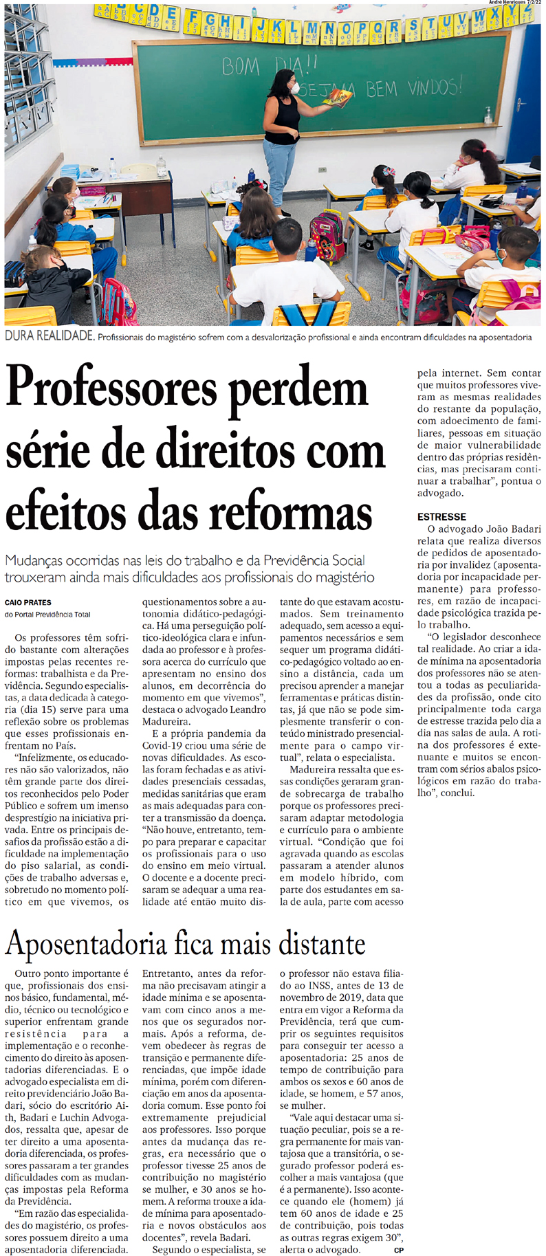 Professores perdem série de direitos com efeitos das reformas