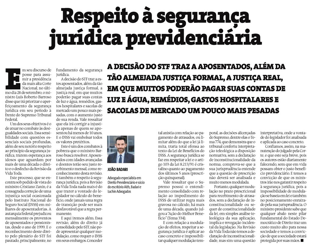 Respeito à segurança jurídica previdenciária