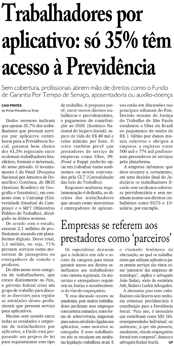 Trabalhadores por aplicativo: só 35% têm acesso à Previdência
