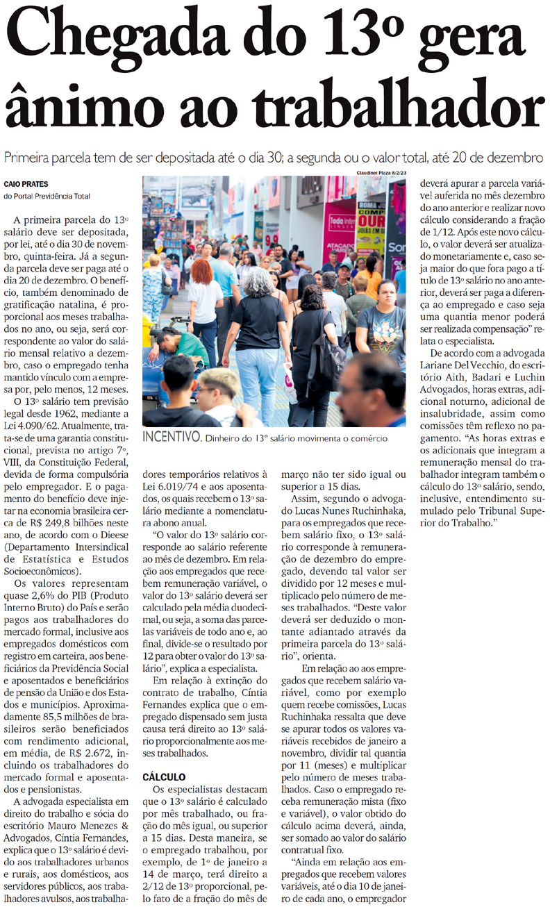 Chegada do 13º gera ânimo ao trabalhador