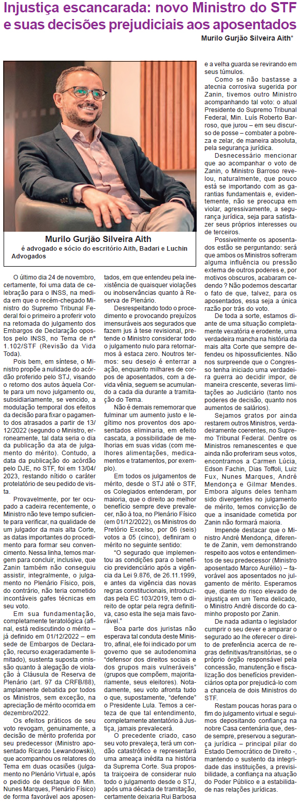 Injustiça escancarada: novo Ministro do STF e suas decisões prejudiciais aos aposentados