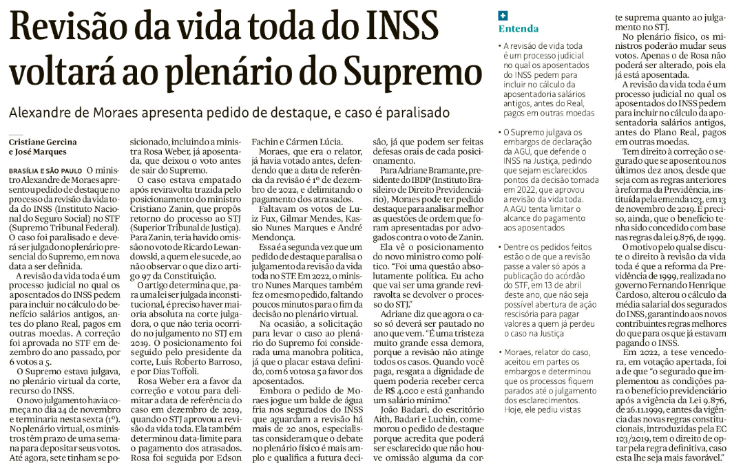 Revisão da vida toda do INSS voltará ao plenário do Supremo