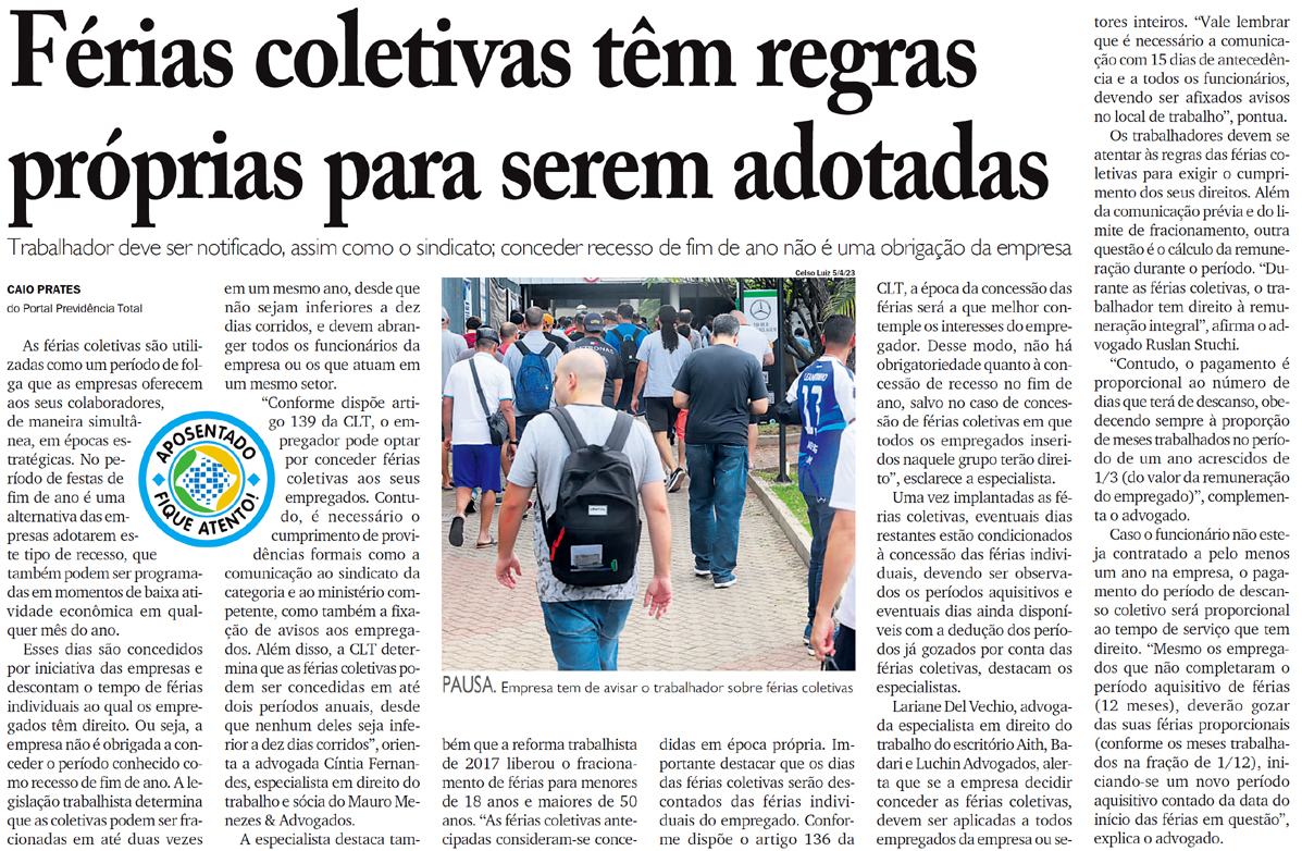 Férias coletivas têm regras próprias para serem adotadas