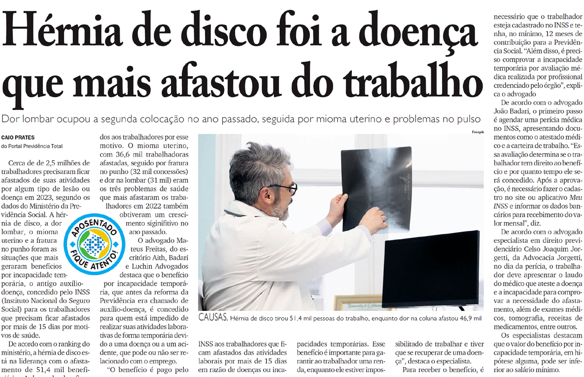 Hérnia de disco foi a doença que mais afastou do trabalho