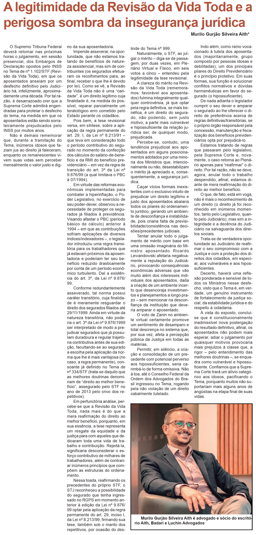 A legitimidade da Revisão da Vida Toda e a perigosa sombra da insegurança jurídica