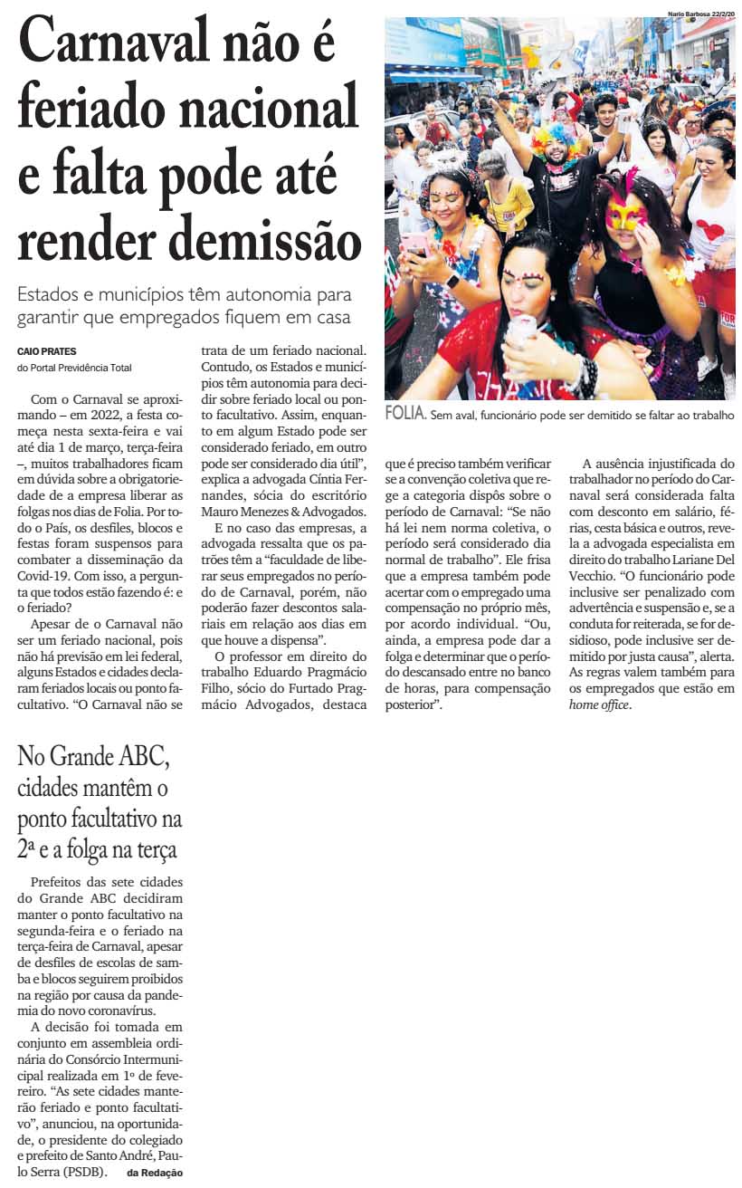Carnaval não é feriado nacional e falta pode até render demissão