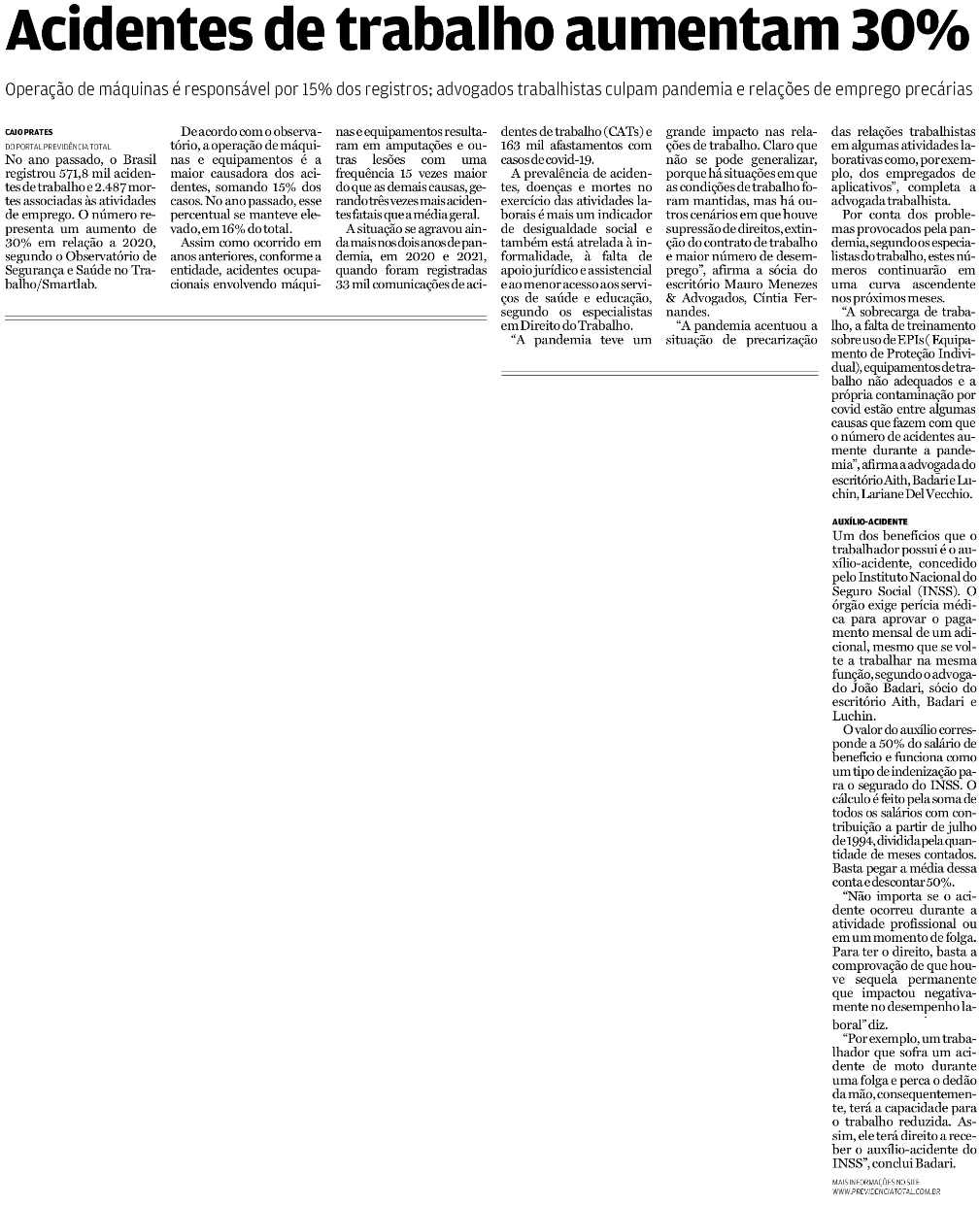 Acidentes de trabalho aumentam 30%