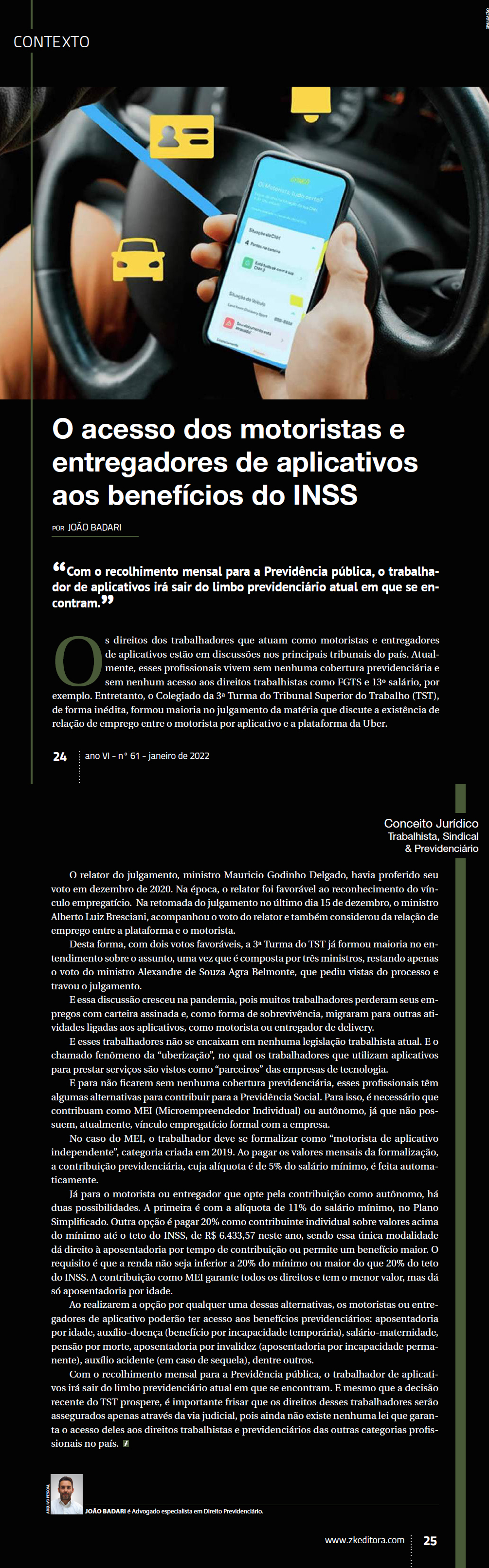 O acesso dos motoristas e entregadores de aplicativos aos benefícios do INSS