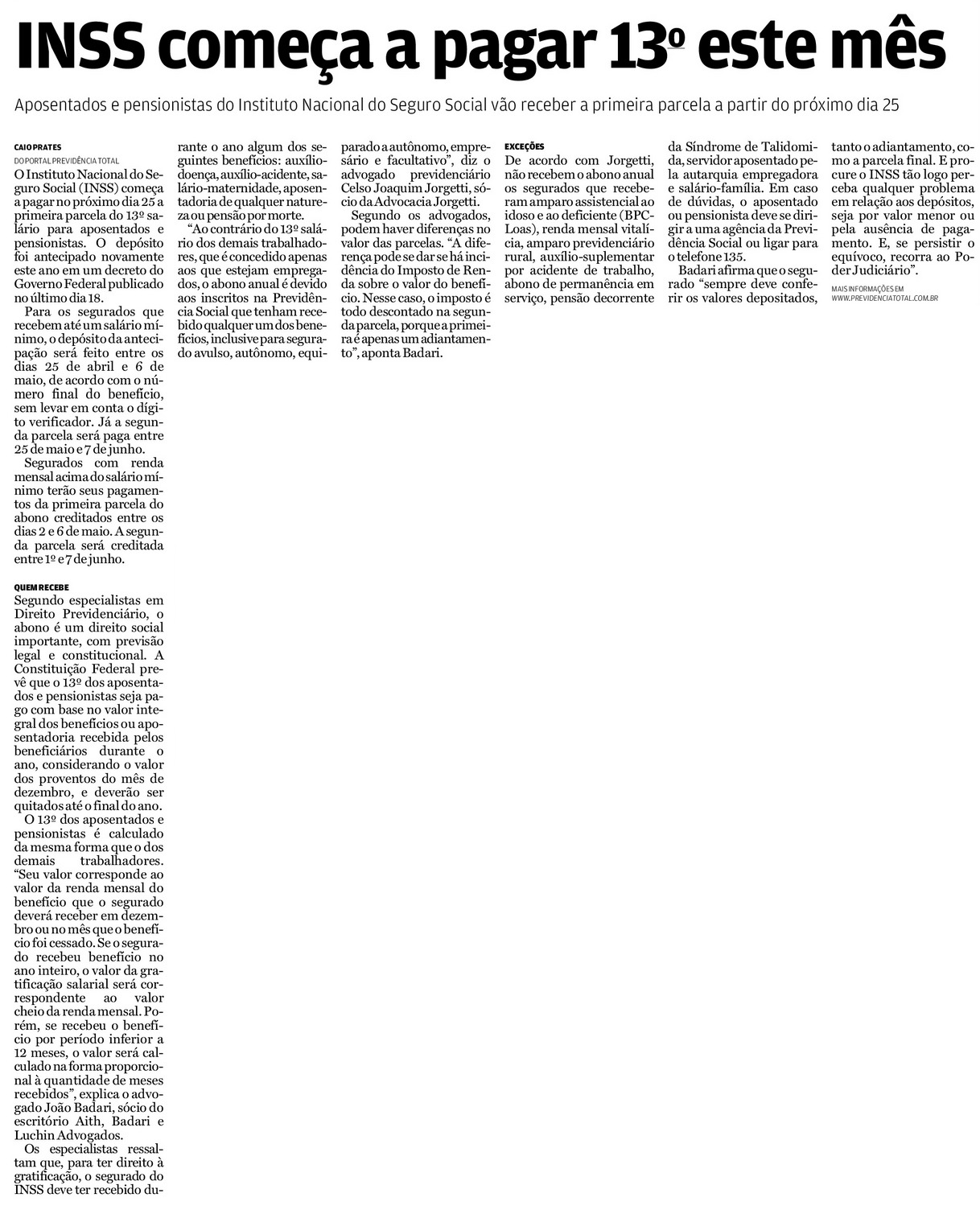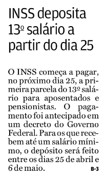 INSS começa a pagar 13º este mês