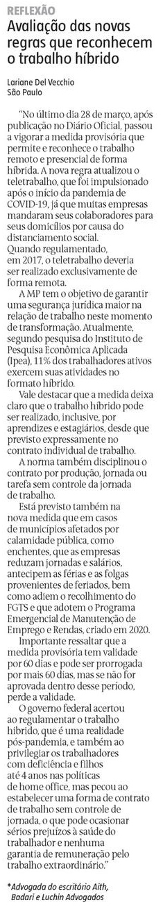 Avaliação das novas regras que reconhecem o trabalho Híbrido
