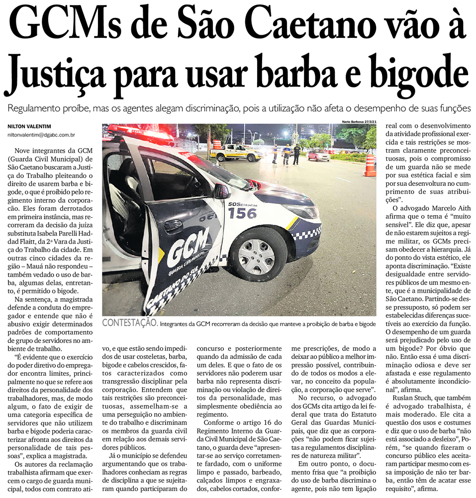 GCMs de São Caetano vão à Justiça para usar barba e bigode