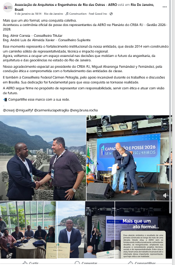 Veículo: Online -> Facebook -> Facebook AERO - Associação de Arquitetos e Engenheiros de Rio das Ostras
