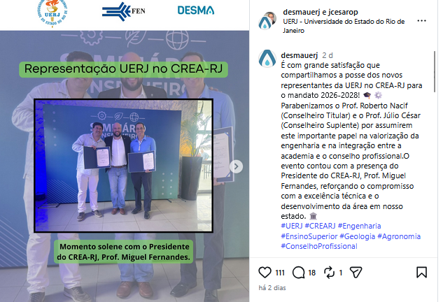 Posse dos novos representantes da UERJ no CREA-RJ para o mandato 2026-2028