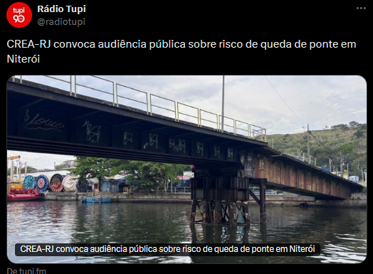 CREA-RJ convoca audiência pública sobre risco de queda de ponte em Niterói