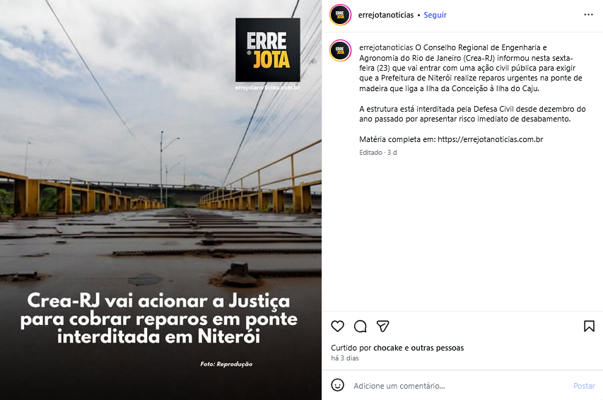 Veículo: Online -> Instagram -> Instagram ErreJota Notícias