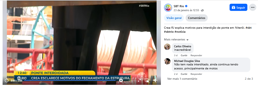 Crea-RJ explica motivos para interdição de ponte em Niterói