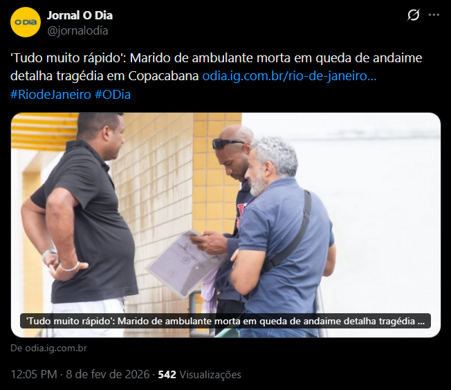 'Tudo muito rápido': Marido de ambulante morta em queda de andaime detalha tragédia em Copacabana