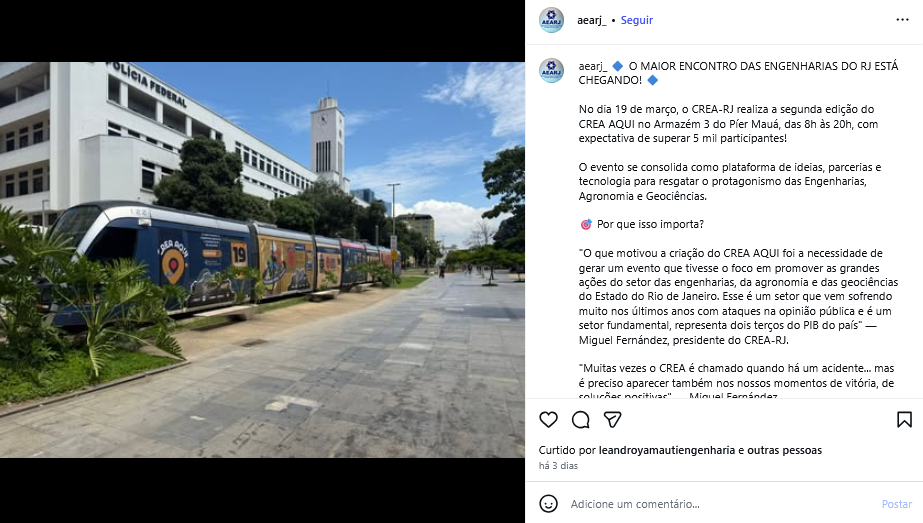 Veículo: Online -> Instagram -> Instagram AEARJ - Associação dos Engenheiros Agrônomos do Estado do Rio de Janeiro