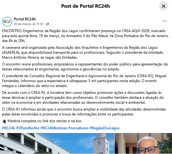Engenheiros da Região dos Lagos confirmaram presença no CREA AQUI 2026