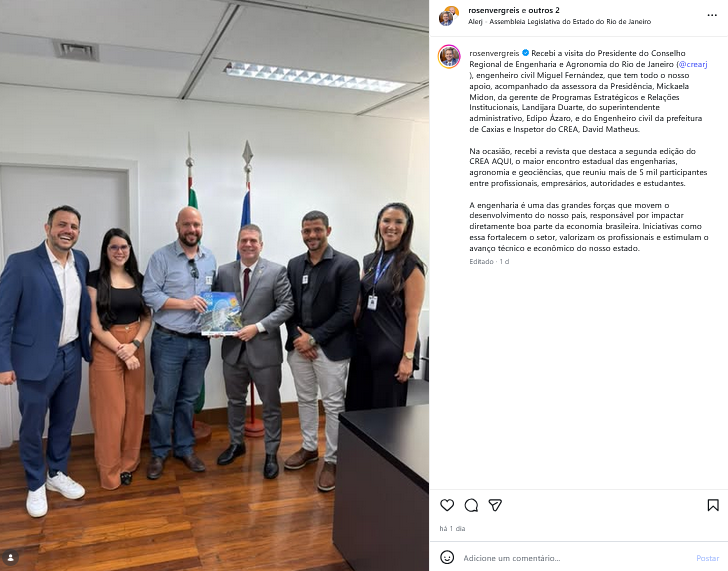 Recebi a visita do Presidente do Conselho Regional de Engenharia e Agronomia do Rio de Janeiro
