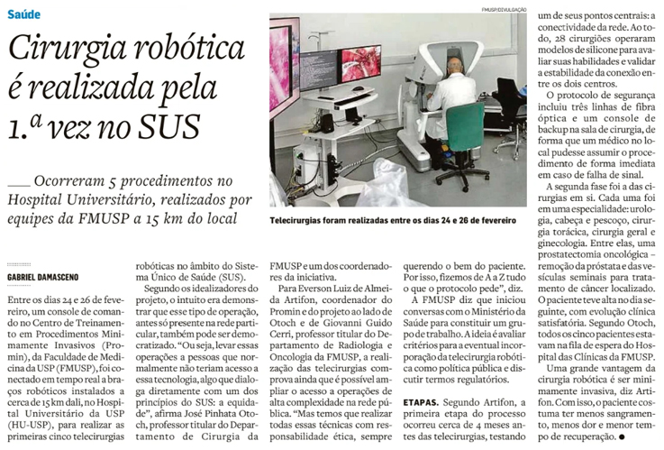 Cirurgia robótica é realizada pela 1.ª vez no SUS