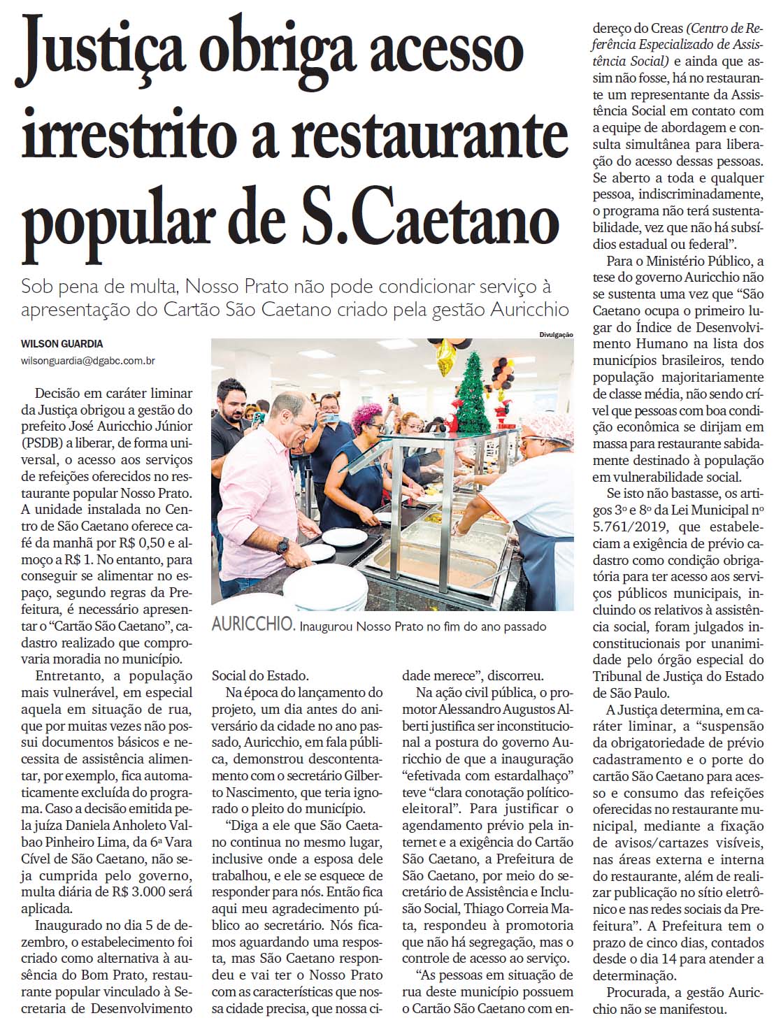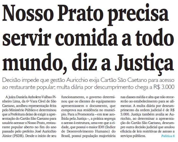Justiça obriga acesso irrestrito a restaurante popular de S.Caetano