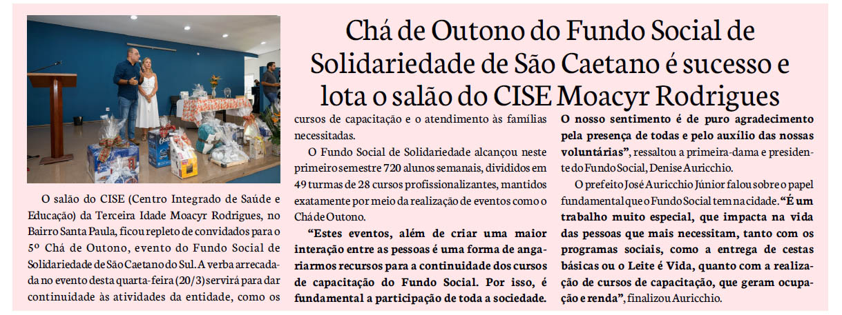Chá de Outono do Fundo Social de Solidariedade de São Caetano é sucesso e lota o salão do CISE Moacyr Rodrigues