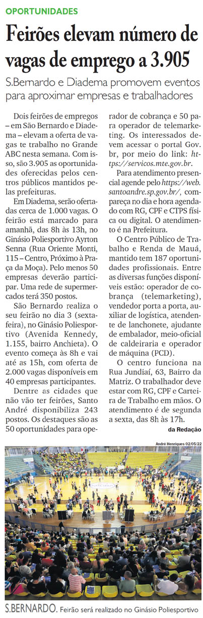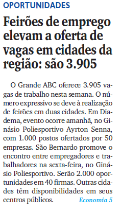 Veículo: Impresso -> Jornal -> Jornal Diário do Grande ABC