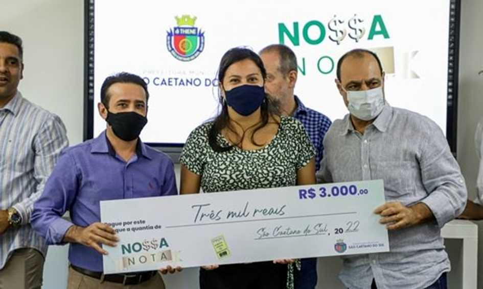 A Prefeitura de São Caetano do Sul entregou premiação de R$60 mil do Programa Nossa Nota a contribuintes que exigiram nota fiscal de prestação de serviços na cidade. O evento desta segunda-feira (28/3), no Palácio da Cerâmica, contou com as presenças do prefeito José Auricchio Júnior, secretários municipais e vereadores, além de premiados – um prêmio de R$30 mil e dez prêmios de R$3 mil.