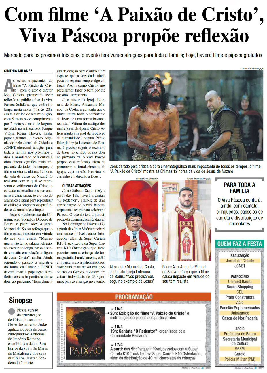 Filme bíblico vai abriri hoje o Viva Páscoa Solidária, no Vitória Régia