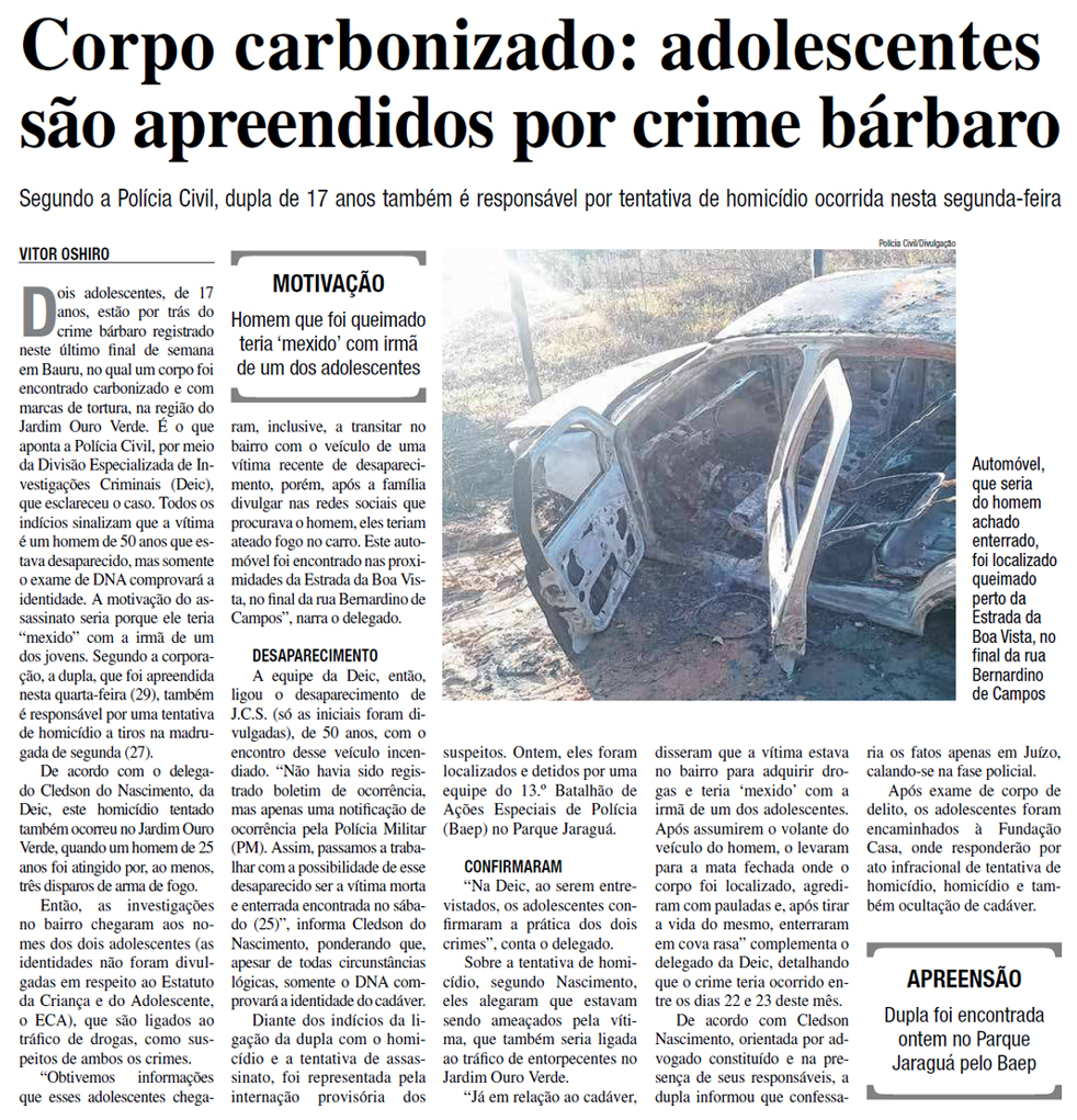 Adolescentes são apreendidos por crime bárbaro em Bauru