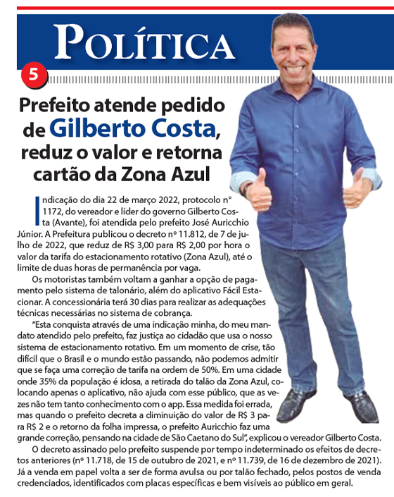 Prefeito atende pedido de Gilberto Costa, reduz o valor e retorna cartão da Zona Azul