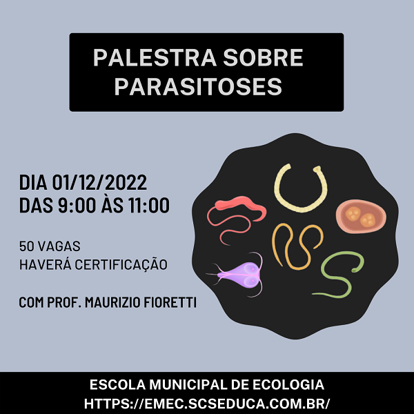 As doenças parasitárias constituem uma das principais causas de morte mundial e ainda são um problema de saúde pública no Brasil. Para tirar dúvidas sobre essas doenças, a Escola Municipal de Ecologia de São Caetano promoverá palestra sobre o tema no dia 1º de dezembro, quinta-feira.