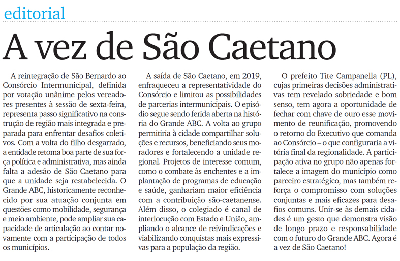 Editorial - A vez de São Caetano