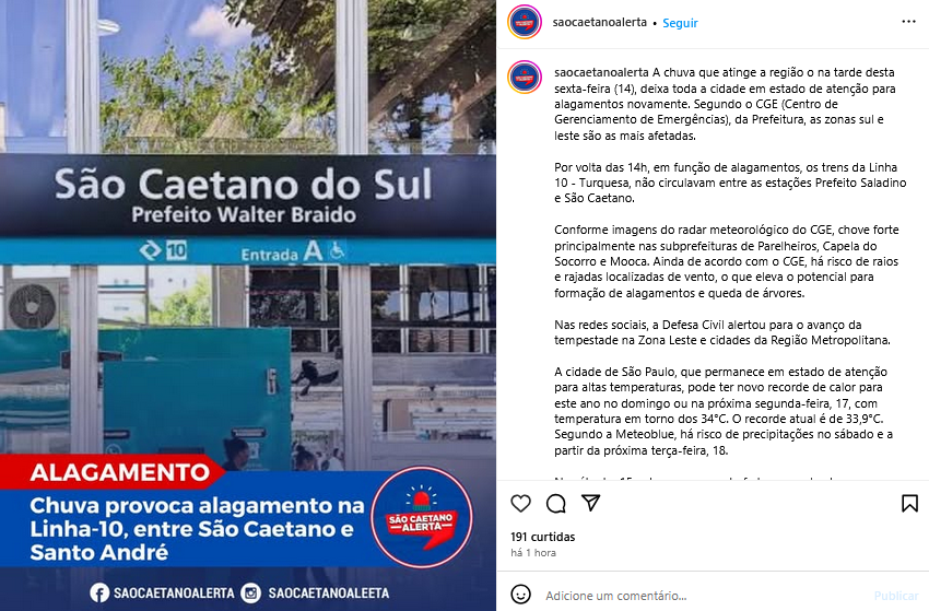 Veículo: Online -> Instagram -> Instagram São Caetano Alerta