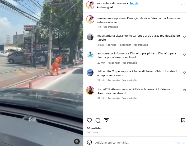 Remoção da ciclo faixa da rua Amazonas está acontecendo!