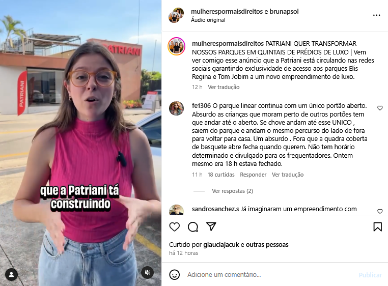 Patriani quer transformar nossos parques em quintais de prédios de luxo