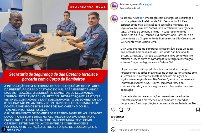 Secretaria de Segurança de São Caetano fortalece parceria com o Corpo de Bombeiros