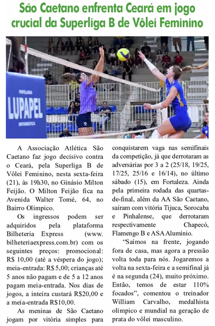 São Caetano enfrenta Ceará em jogo crucial da Superliga B de Vôlei Feminino