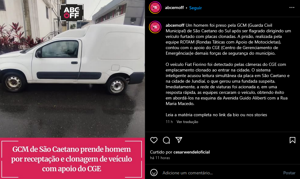 GCM de São Caetano prende homem por receptação e clonagem de veículo com apoio do CGE