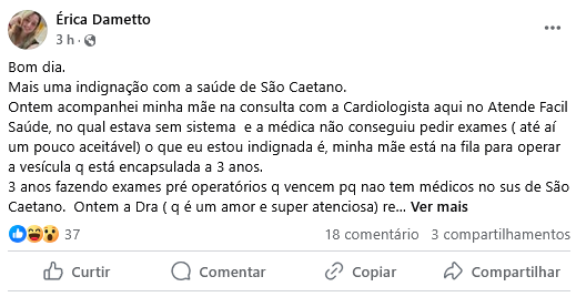 Mais uma indignação de moradora com a saúde de São Caetano