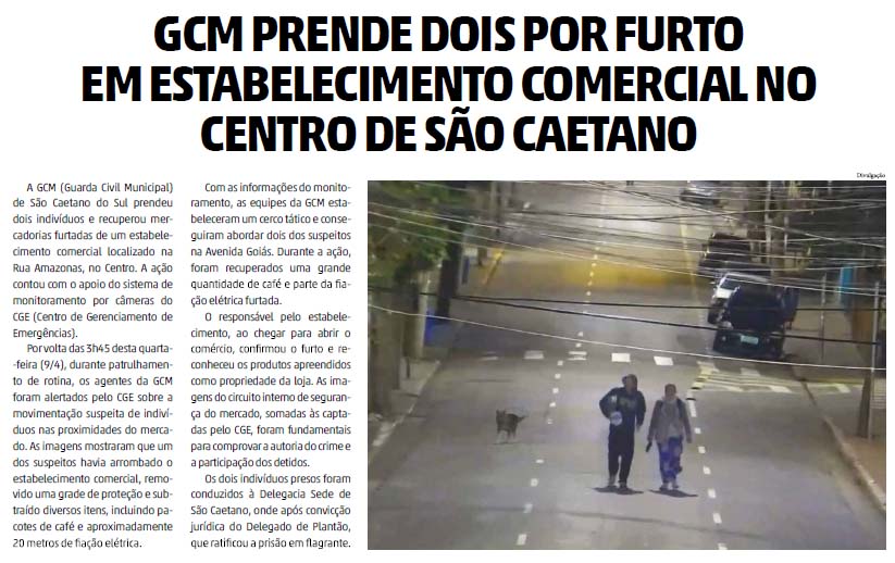 GCM prende dois por furto em estabelecimento comercial no Centro de São Caetano