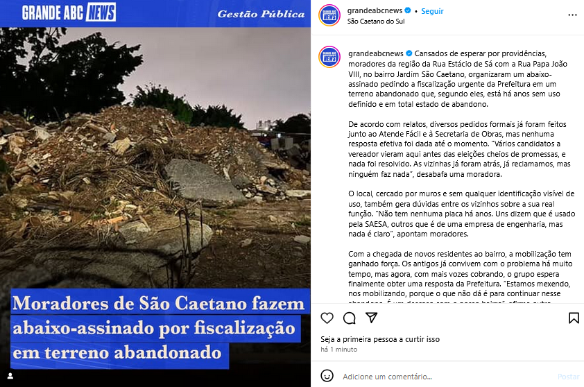 Veículo: Online -> Instagram -> Instagram Grande ABC News