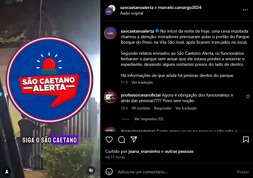 Veículo: Online -> Instagram -> Instagram São Caetano Alerta