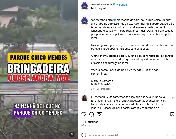 Veículo: Online -> Instagram -> Instagram São Caetano Alerta
